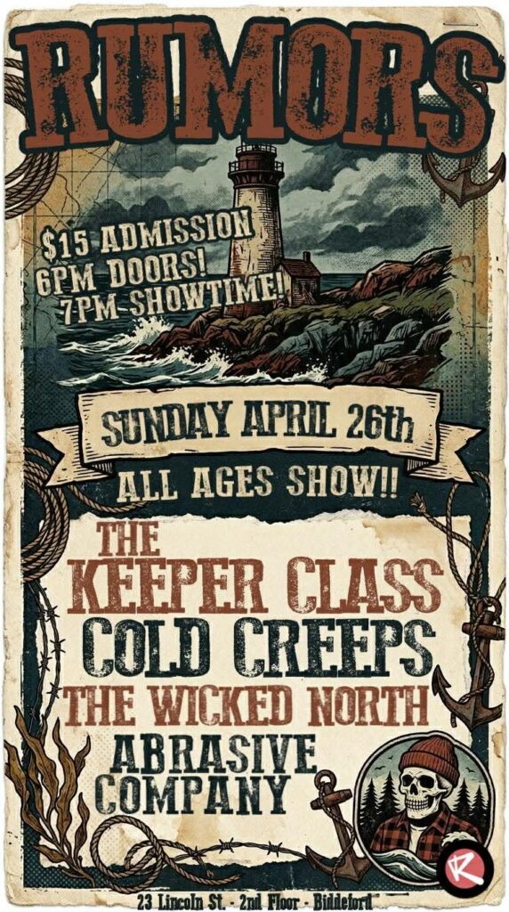 We are excited to be back at Rumors in Biddeford with The Wicked North, Cold Creeps, and Abrasive Company.